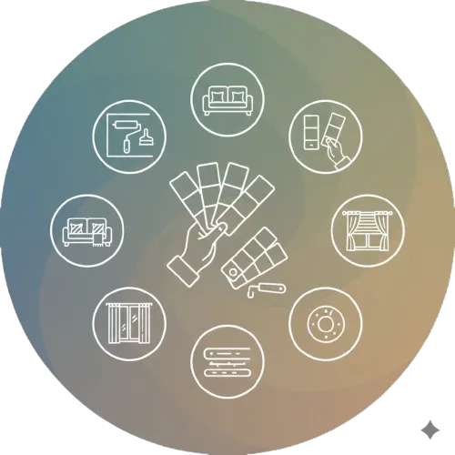 Discover how the right palette can elevate your interior environment. Our consultation service helps you select paint colors and textile tones that work together to create a cohesive visual experience.